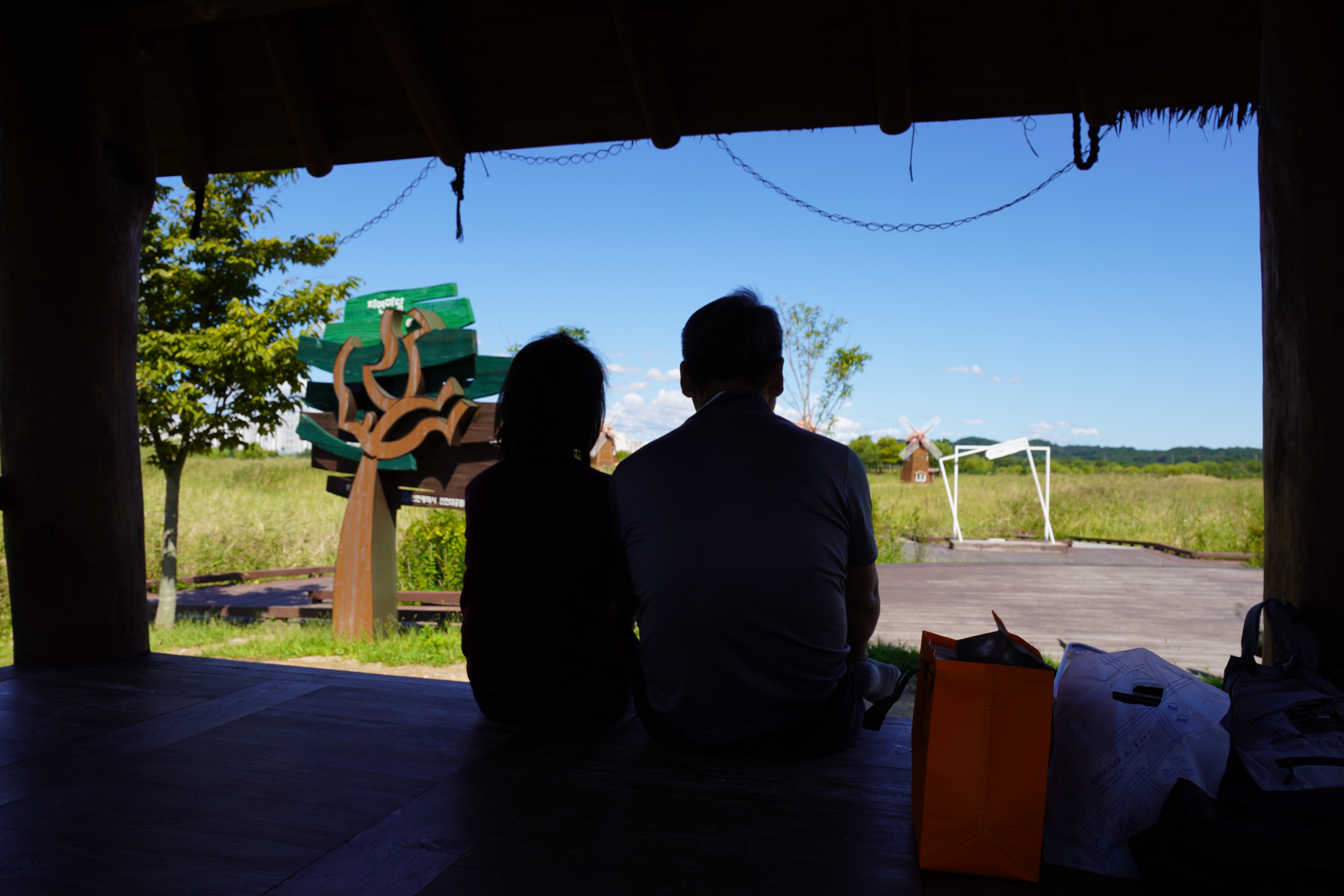 쉼터의 정자로 가서 쉼의 시간을 가집니다.