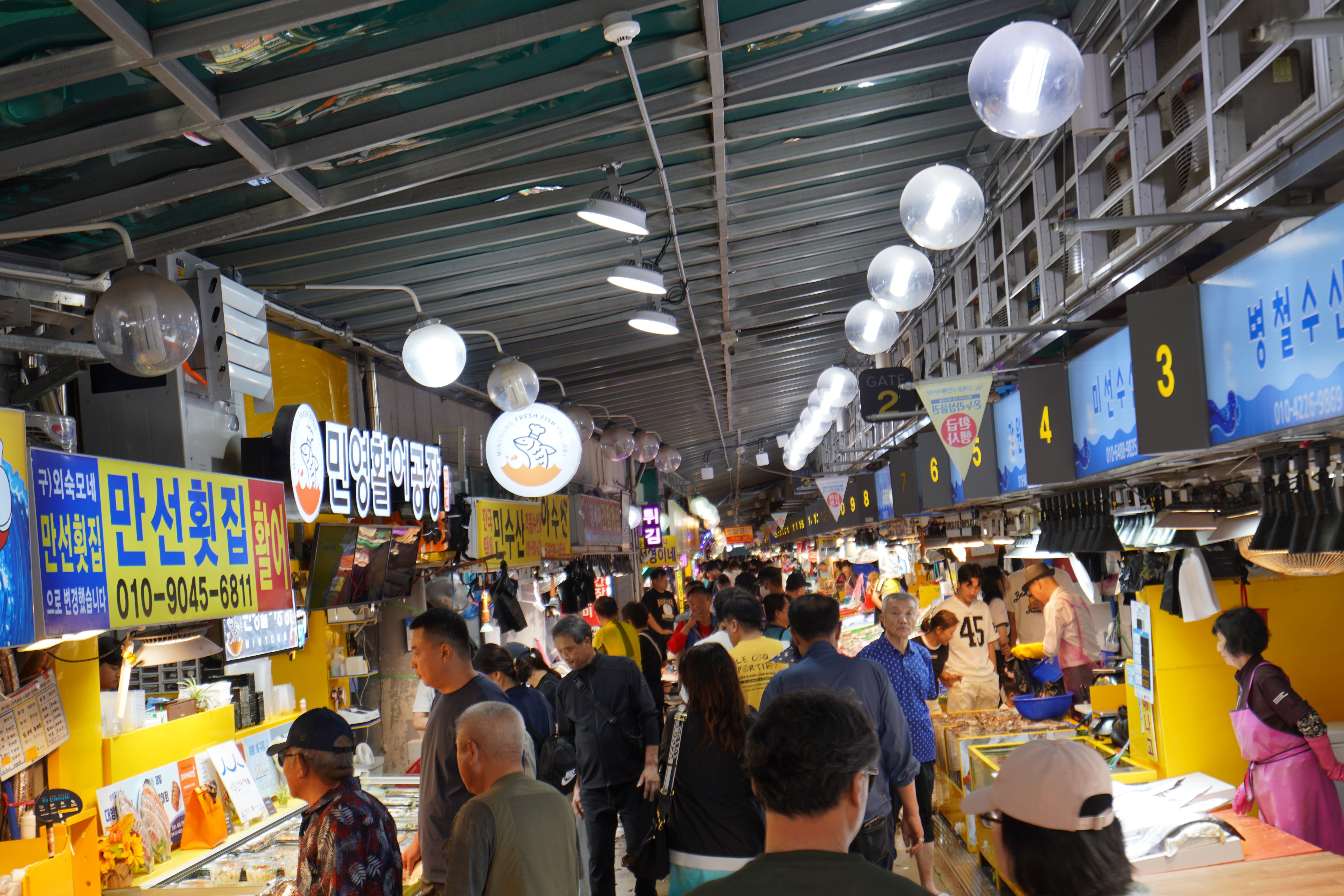 어시장으로 들어가 회와 초밥을 전문으로하는 집을 찾아갑니다.