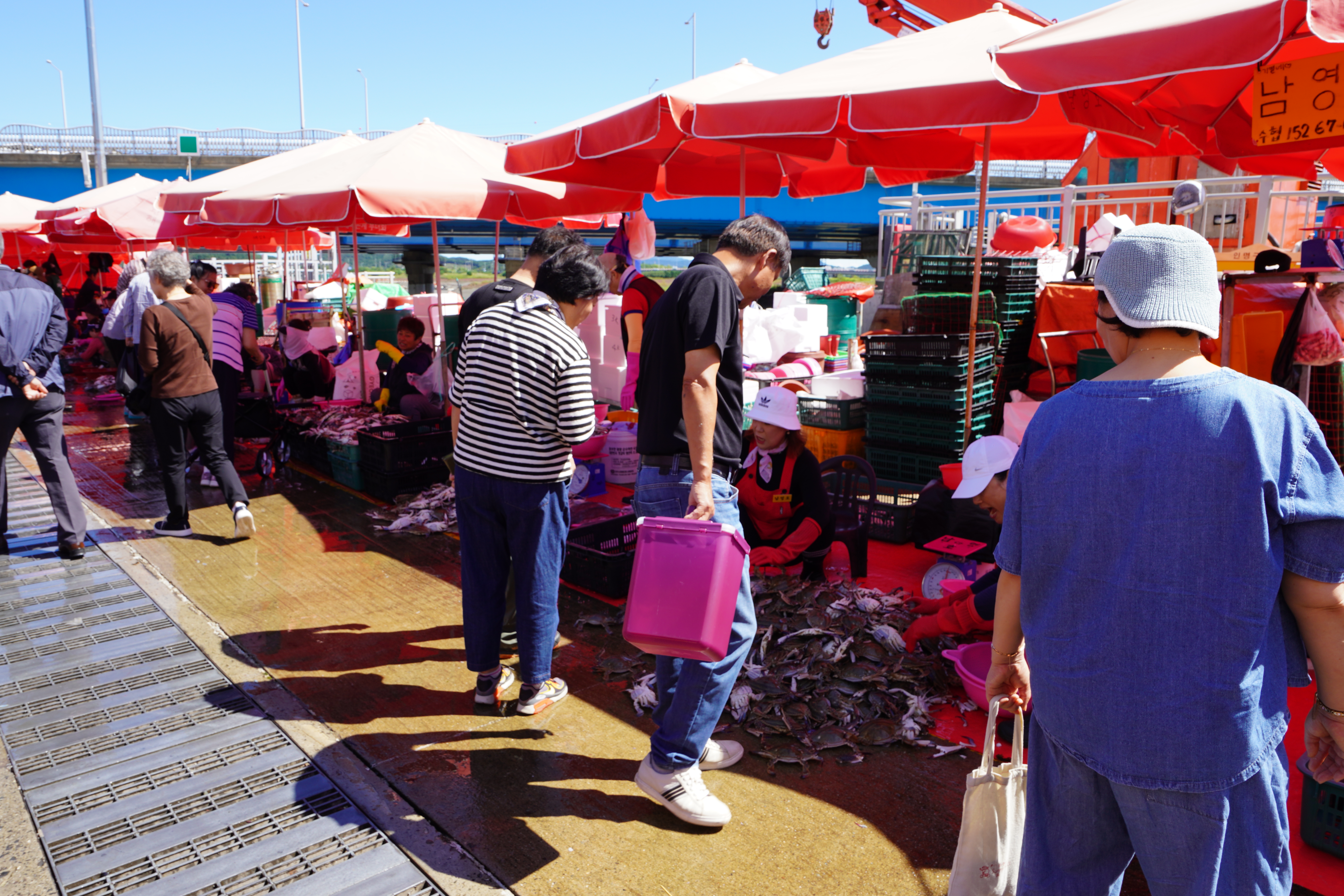 오늘은 어시장에 들러 초밥을 한두팩 사고 난장의 꽃게 구경을 해 보고