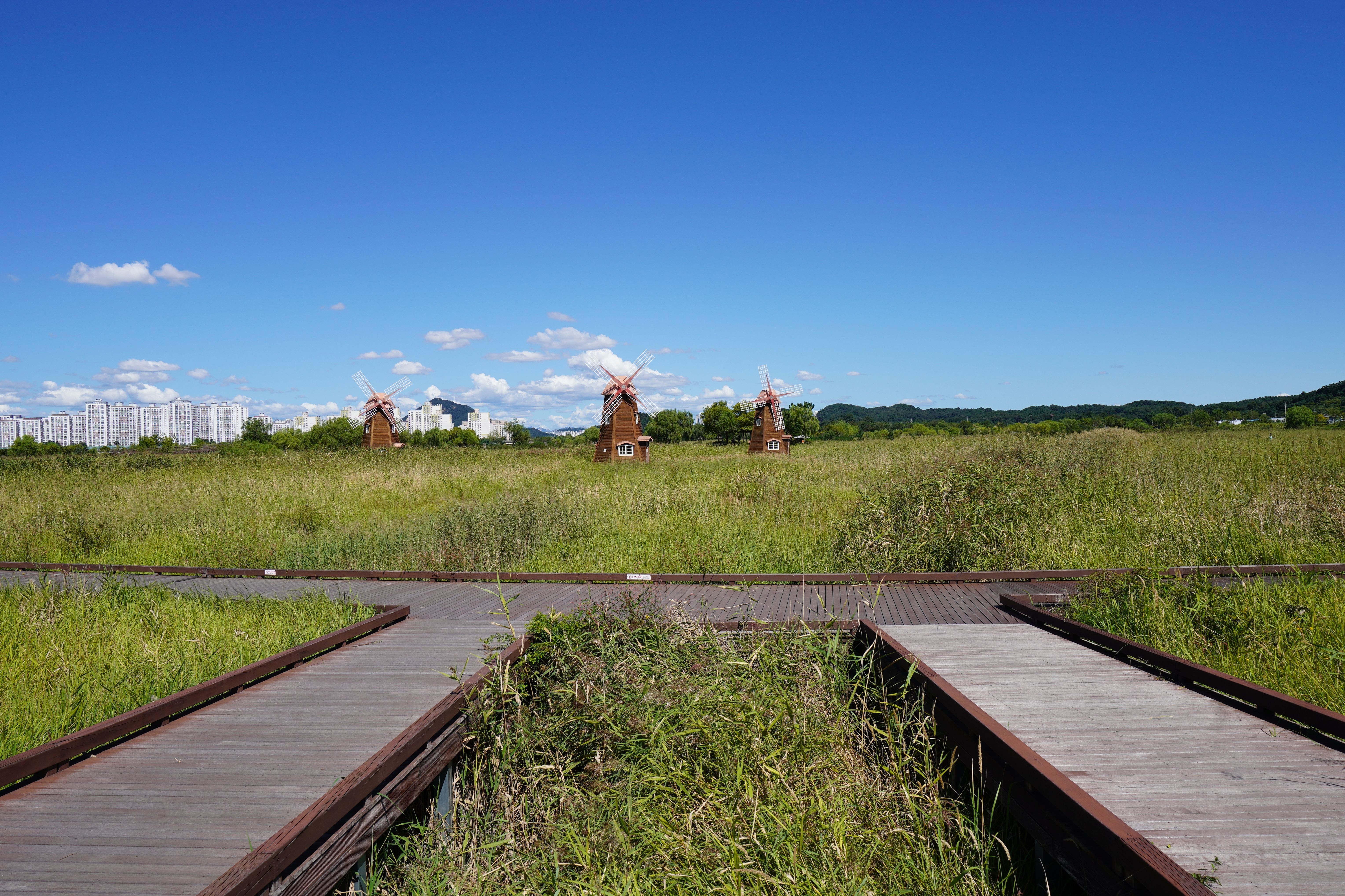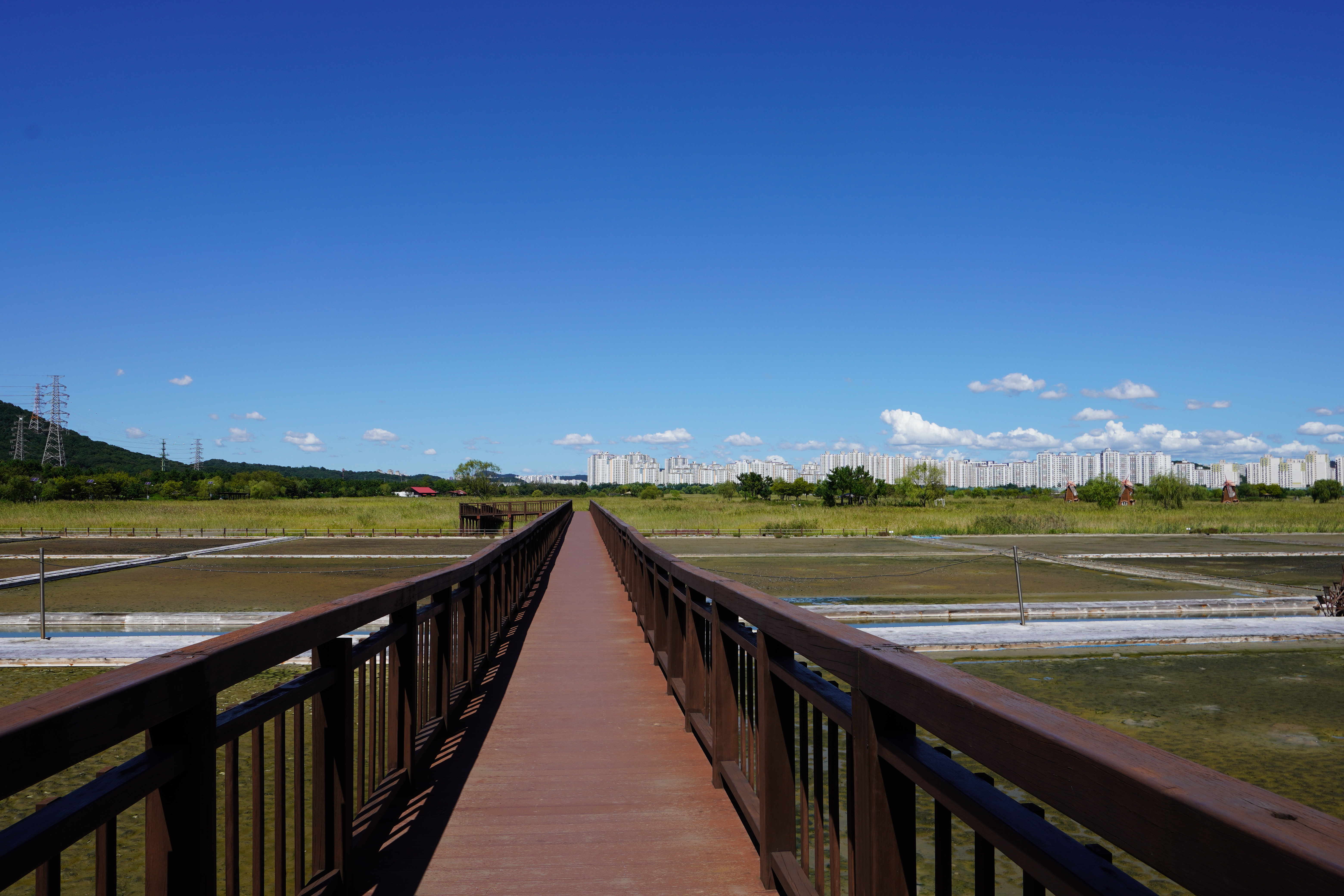 풍차가 있는 쉼터로 가기 위해 데크길로 염전을 건너갑니다.