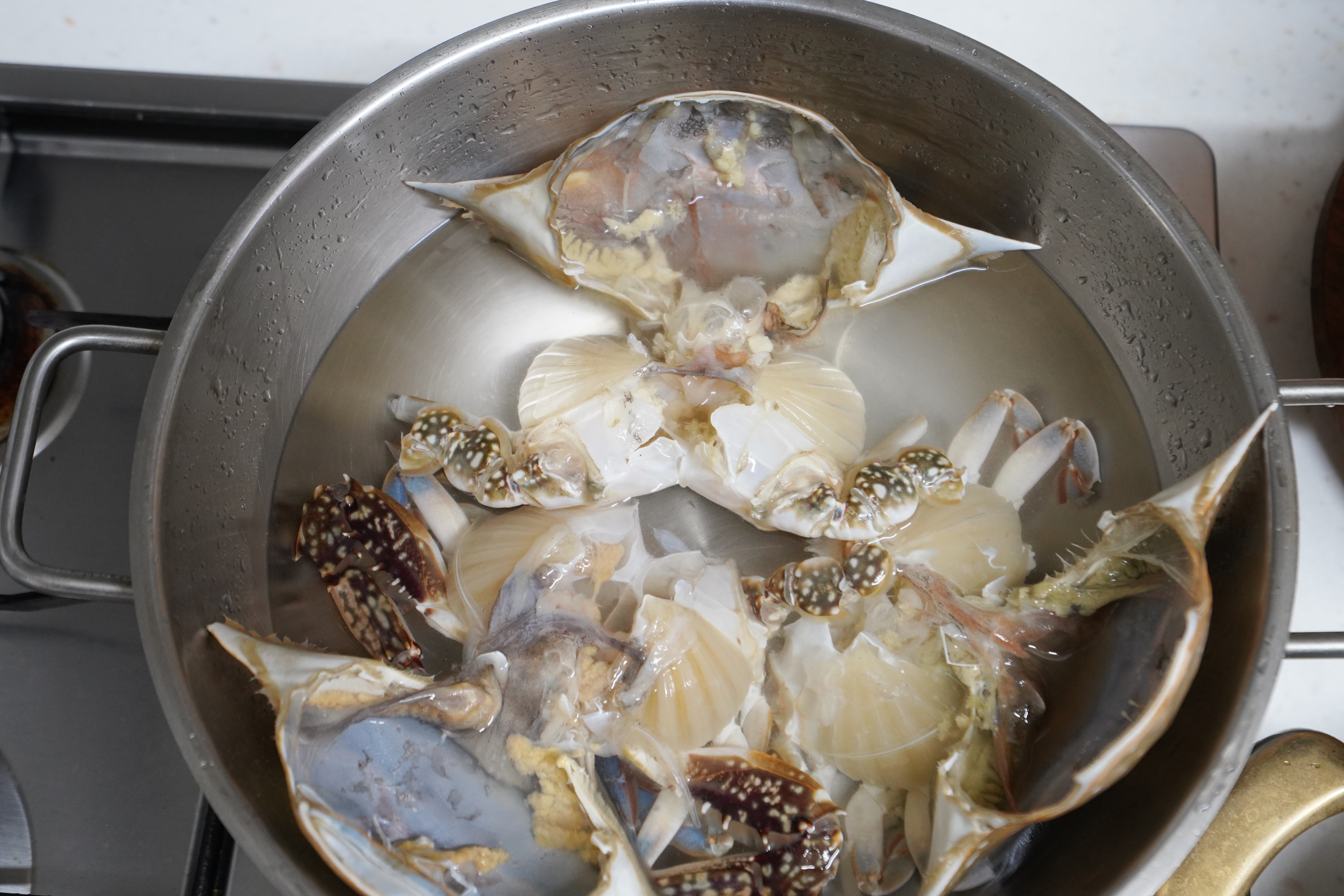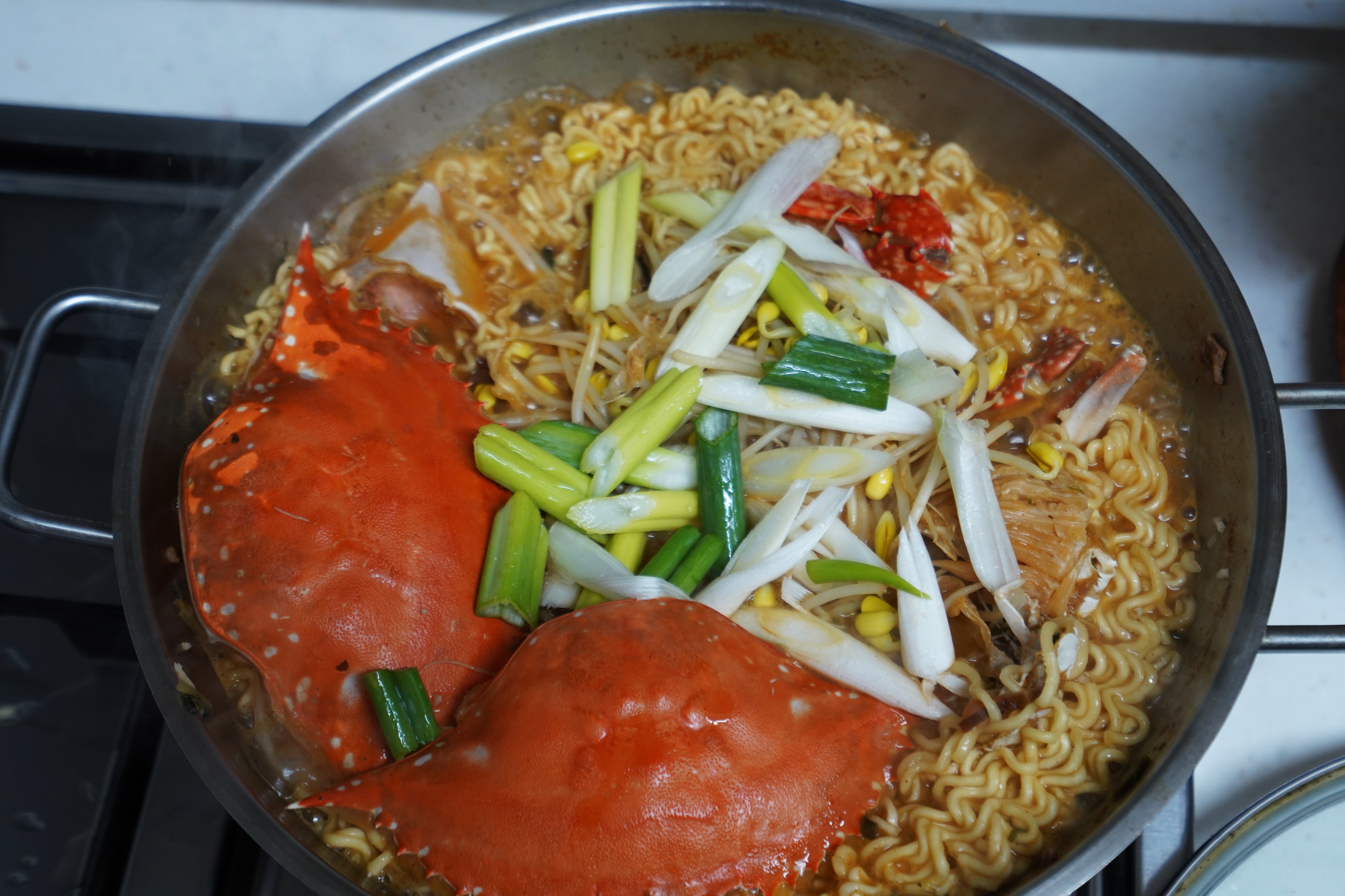 "오늘 꽃게를 사 온 첫 번째 목적은 꽃게라면을 끓이는 것"
