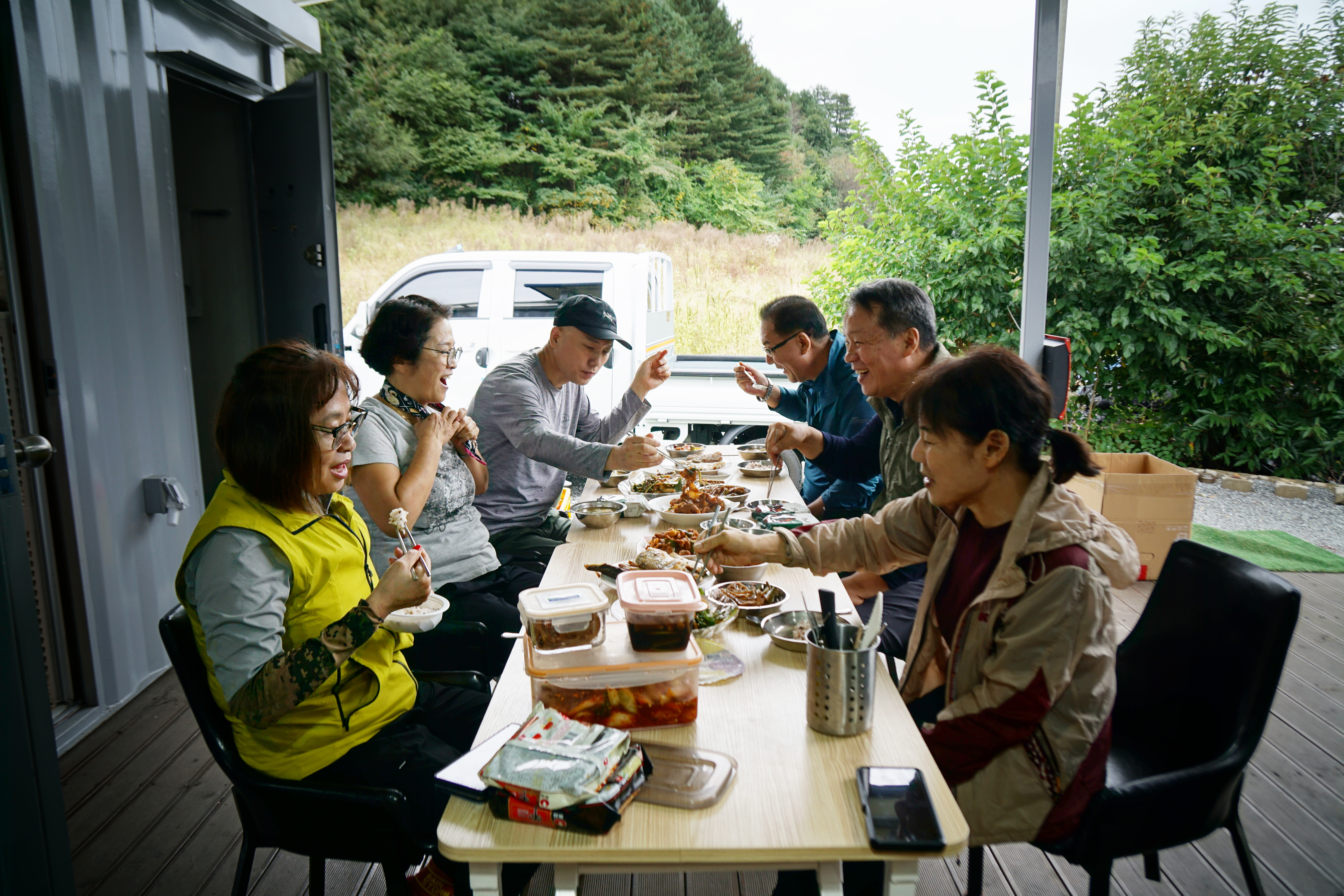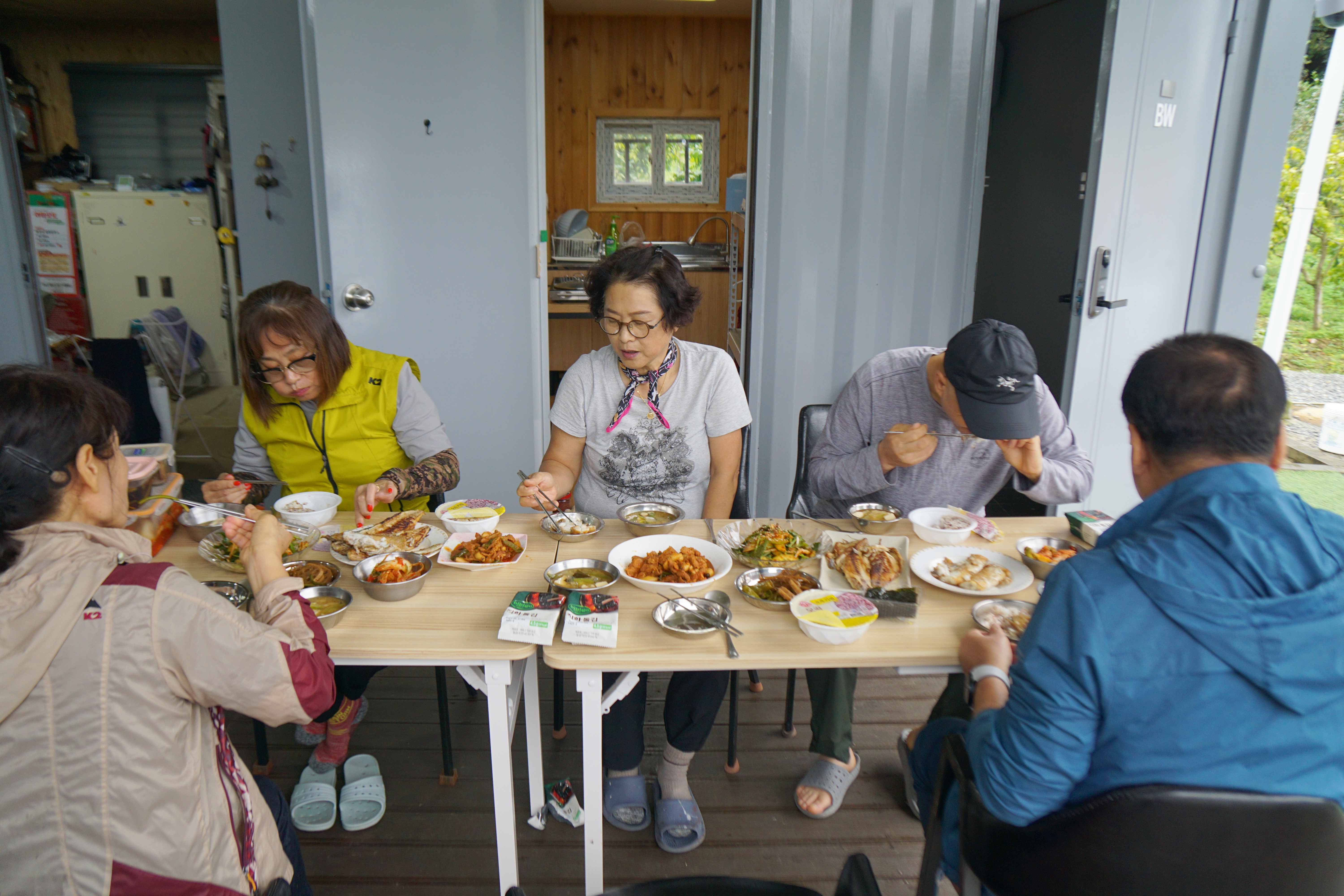 식사를 준비하고 한자리에 둘러앉습니다.