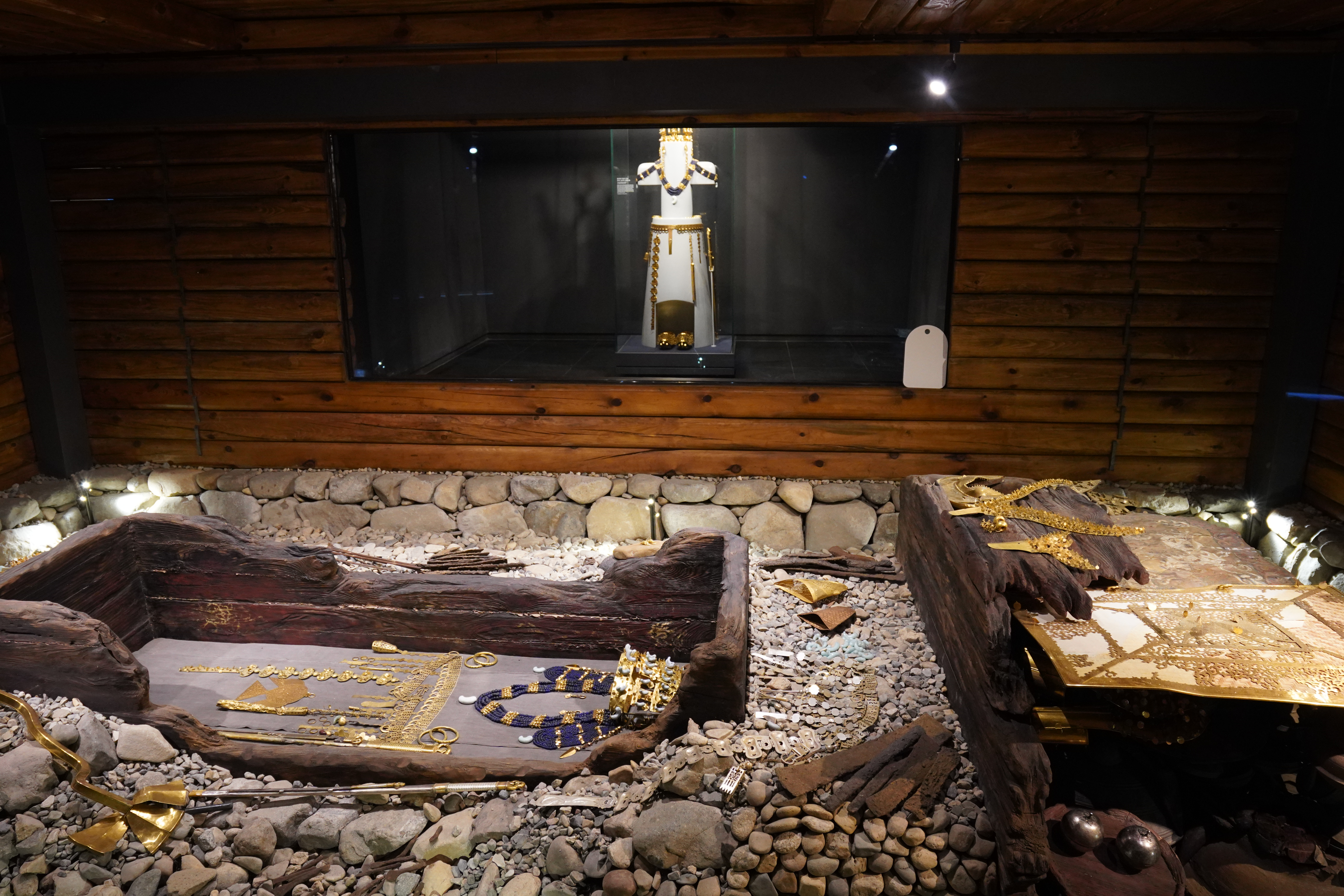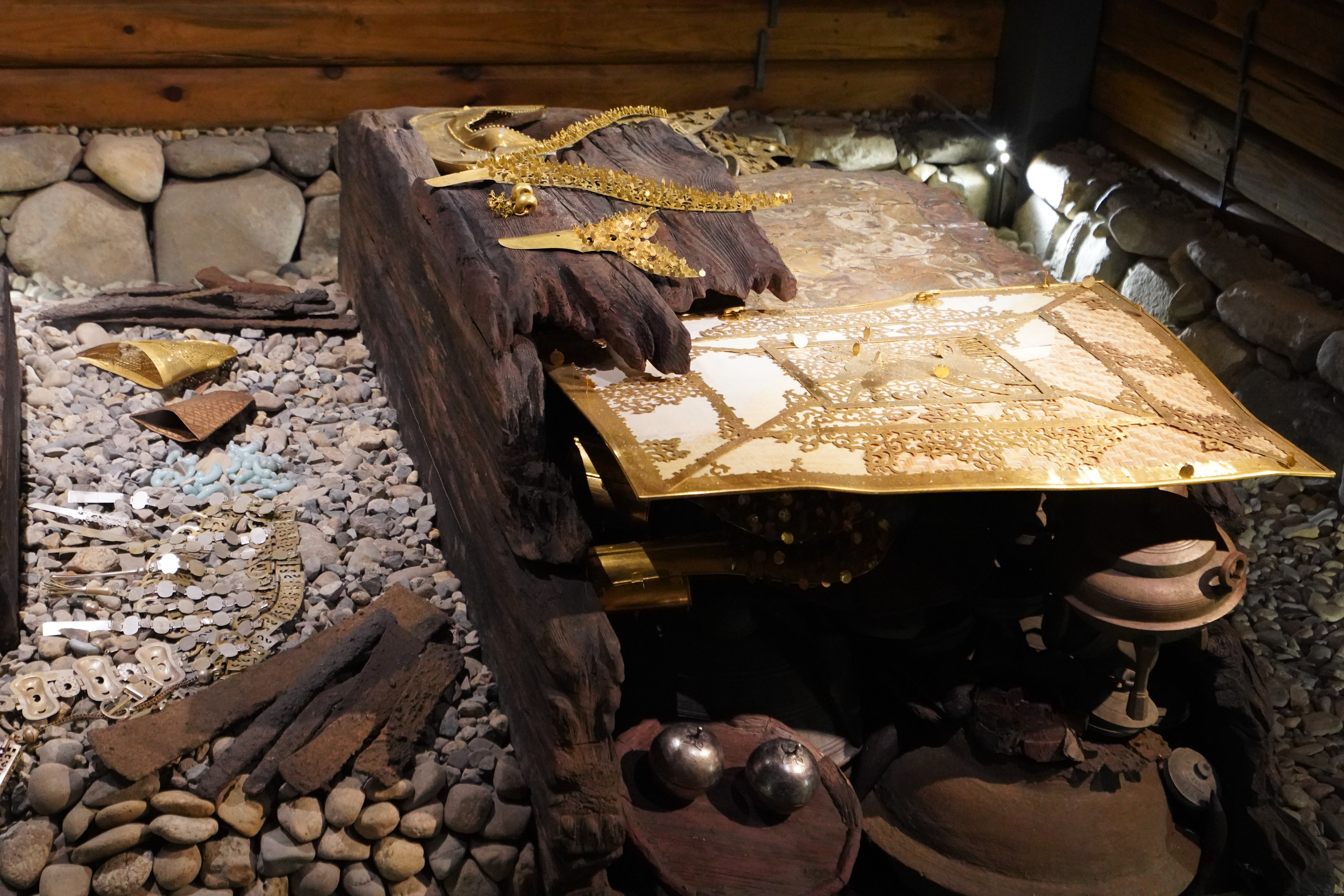 (유물의 수량은 장신구류 8,767개, 무기류 1,234개, 마구류 504개, 용기류 226개, 기타 796개, 총합 11,526개이며 목관 편(木棺片)의 방사성탄소측정(원자력연구소 검사) 연대는 서기 340년±70년이므로 축조 연대는 서기 270년∼410년 사이에 들어간다. 이 연대는 다소 이른 감이 드는데, 그것은 아마도 목관재료 자체의 연대 때문이 아닌가 생각된다. 발굴보고서에서는 소지마립간(炤知麻立干)과 지증왕을 이 고분의 피장자로 추정하고 있다.(다음 백과 참조))