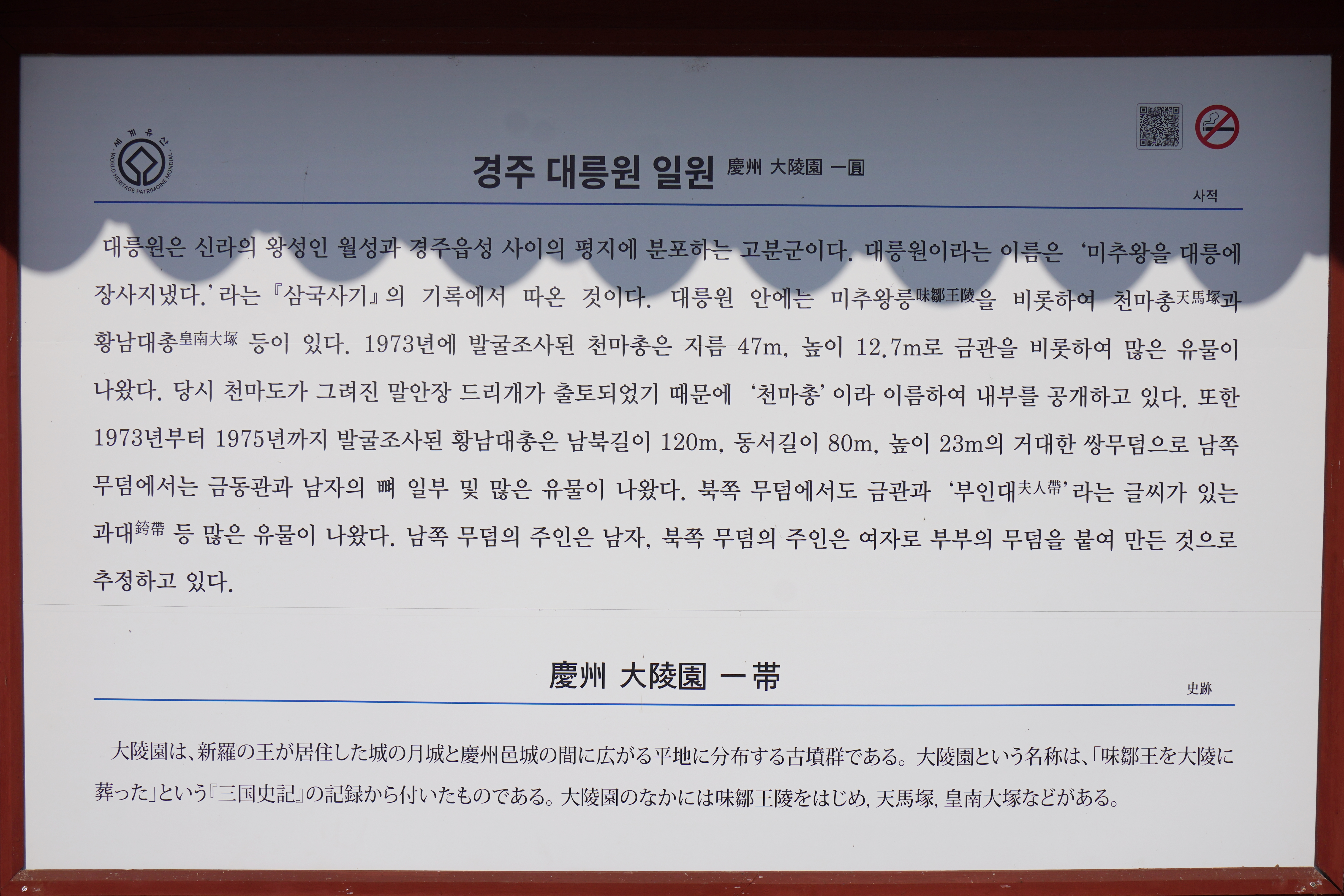차량을 주차해 놓은 대릉원 주차장으로 나와 처형과 마눌은 차량에 남아 기다리라 하고 형님과 대릉원의 천마총을 관람하러 들어갑니다.