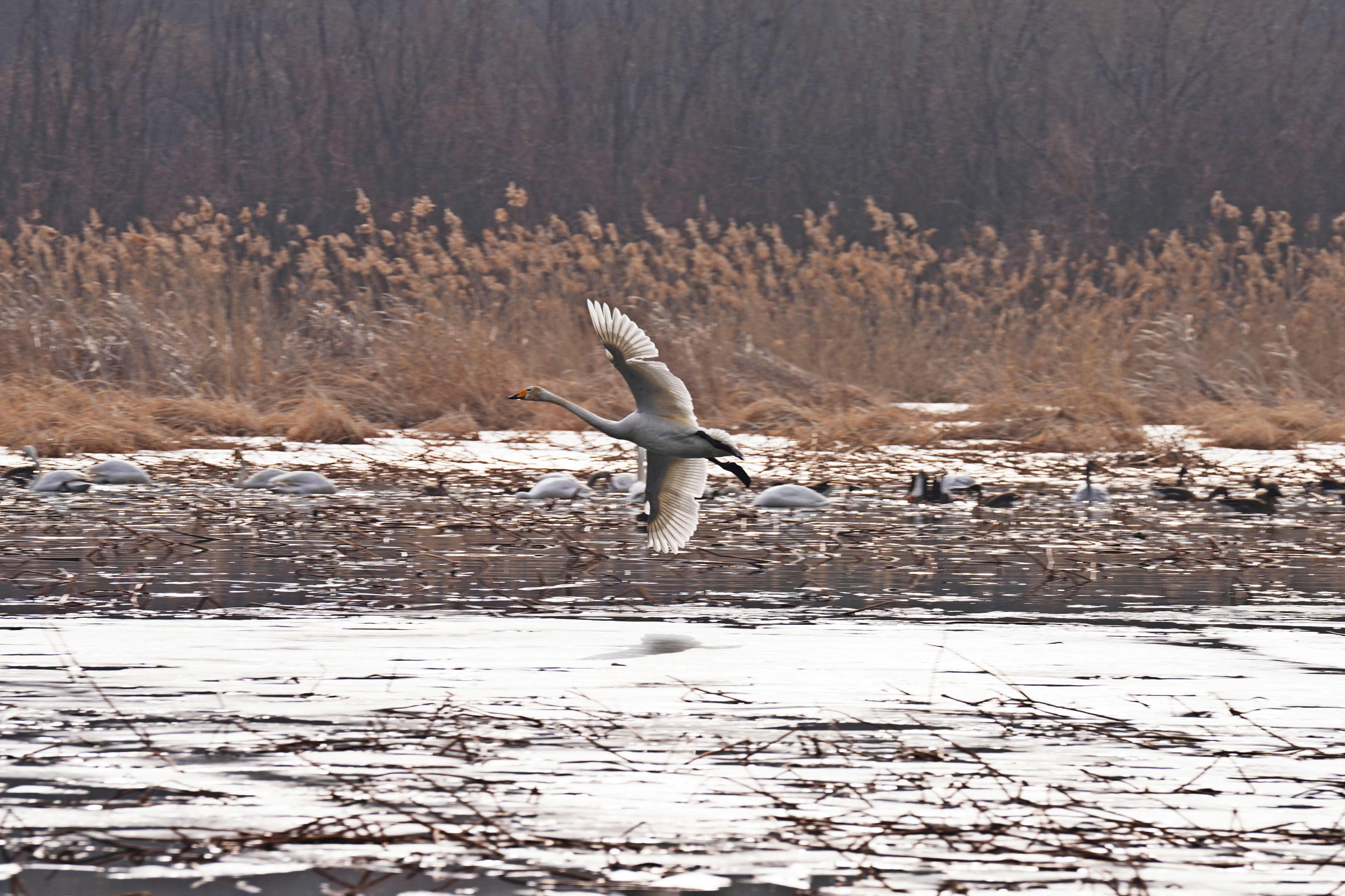 용늪으로 자리를 옮겨보니 십오륙 마리쯤 되는 고니가 날아와 있네요.
