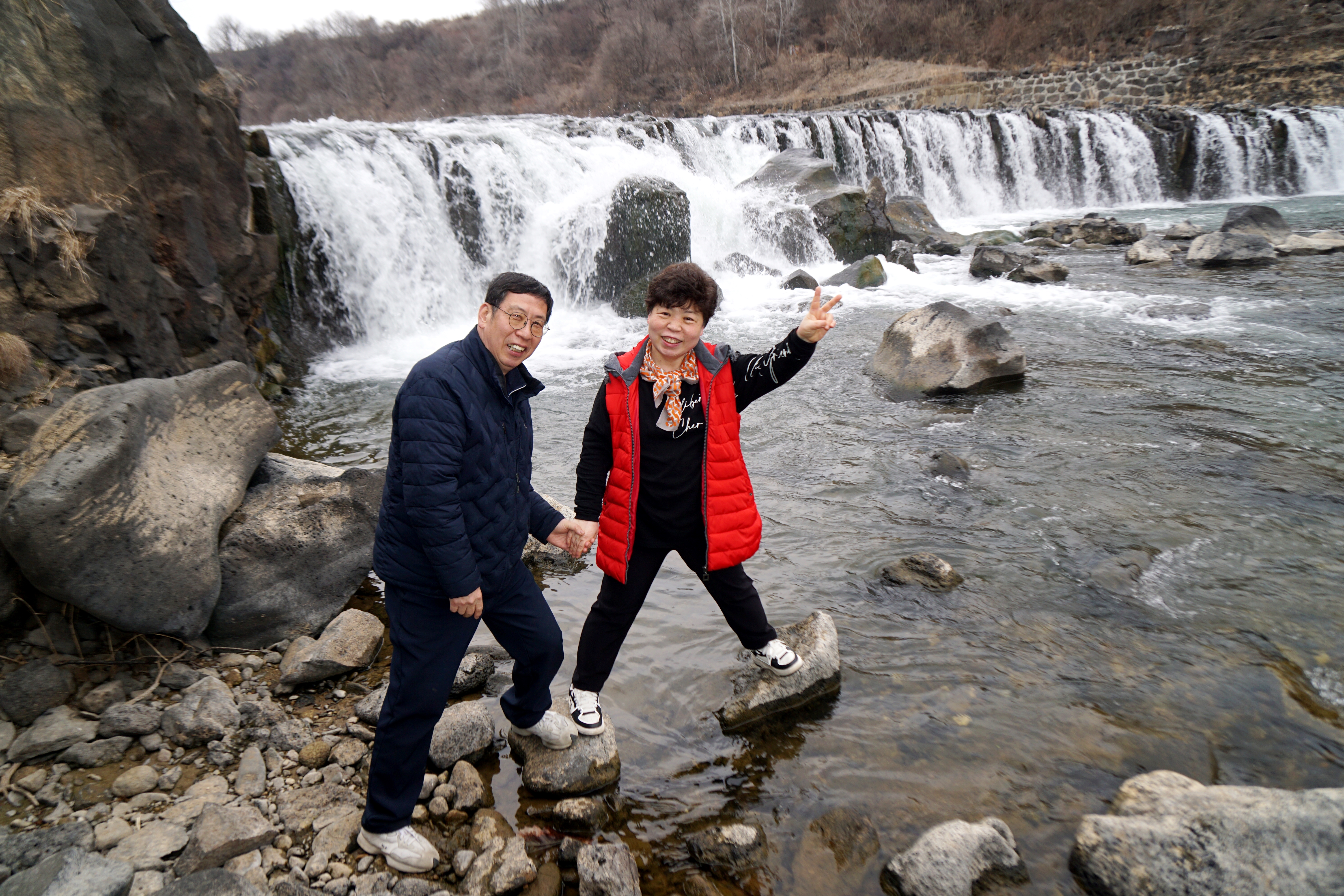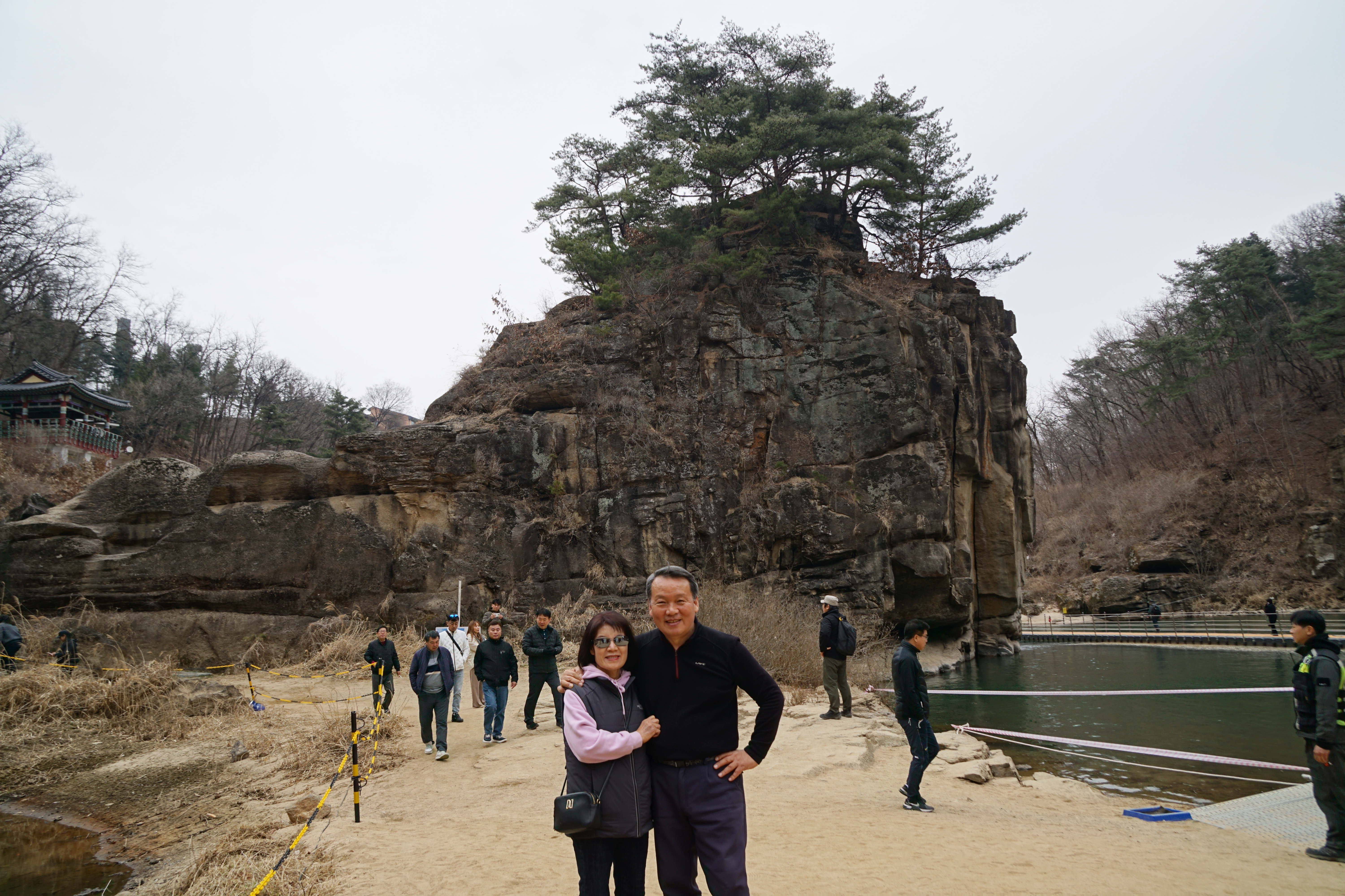 고석바위를 배경으로..... (물윗길이 운영되며 고석정 쪽은 일부가 통제됨)