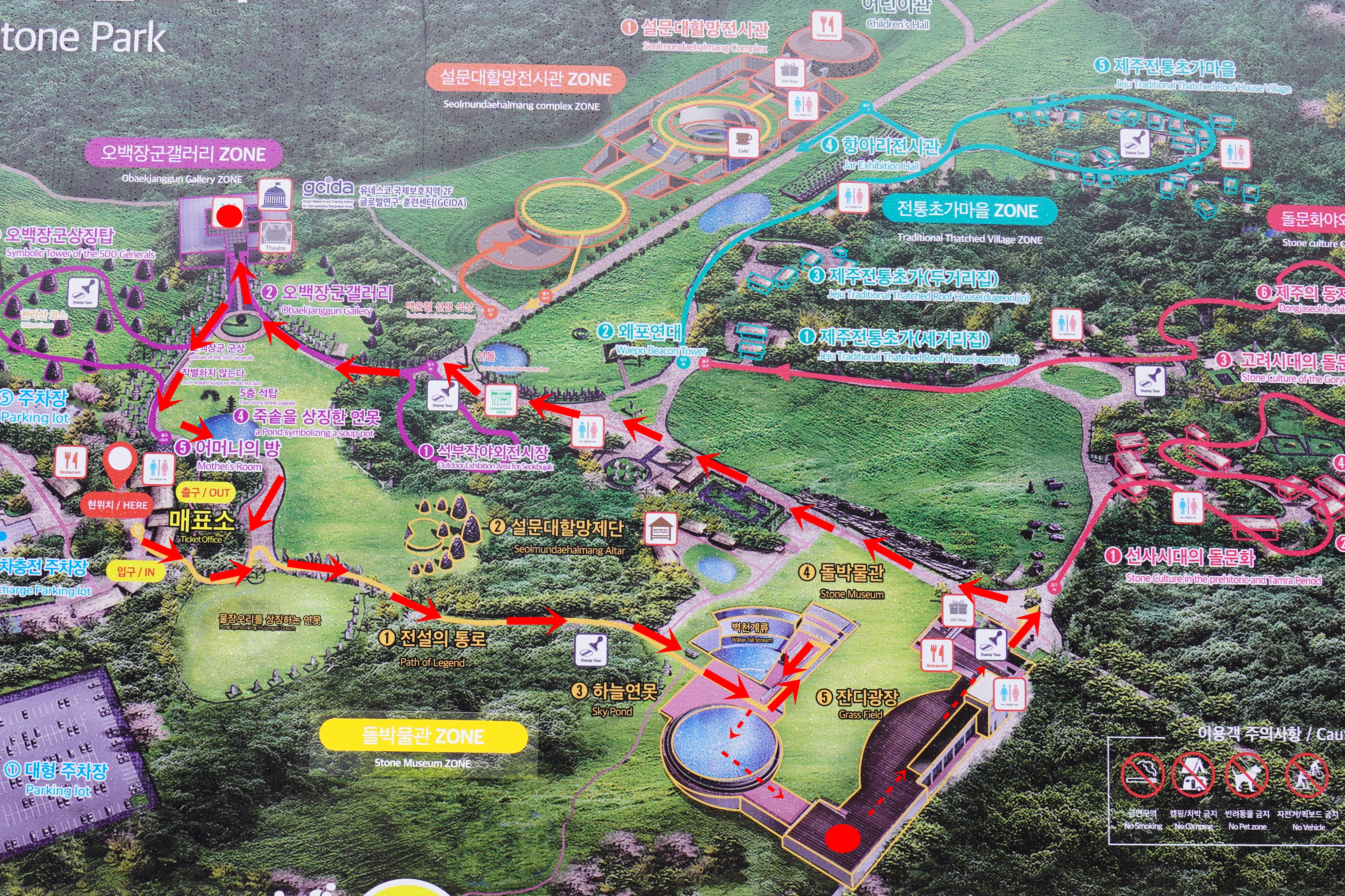 제주 돌문화공원은 규모가 방대하여 시간이 많이 소요되는 관계로 우리의 일정에 맞춰 구간을 조정하여 돌아보기로 합니다.